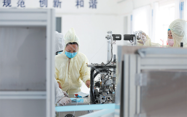 在记者采访过程中,经理宋景峰一直在忙着处理各种事务。他说,另一个无菌车间正在紧张建设,两天内即将投入生产,包括一条N95口罩生产线也即将投入生产。
