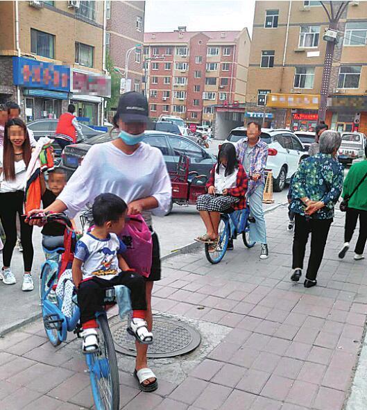 除了王先生碰上的将成年人装入车筐外,自从哈啰单车来到我市,很多家长也这样做。每到上放学高峰时段,在我市各小学校门前,总会看到有家长将孩子装入车筐里接走或者送来。甚至,有些幼儿的家长,也放心地将孩子放入其中,然后在车流中穿行。
