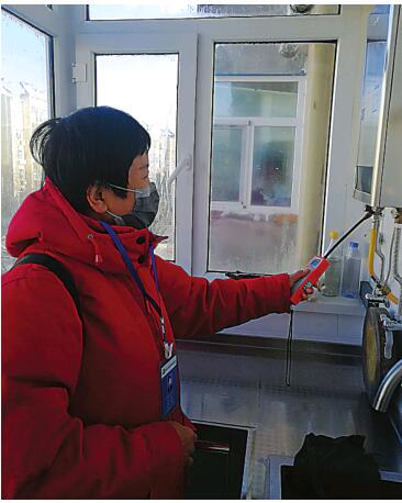 入户时,安检员会身着红色工作服、佩戴工作胸卡和戴口罩。用户可以通过扫描安检员胸卡上的二维码,关注“大庆燃气”微信公众号,对安检员的身份进行识别。