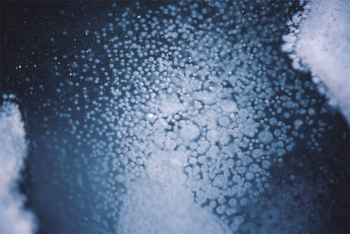 三永湖、东风湖、新潮湖、黎明湖、龙虎泡……因前段时间降下一场大雪,残雪未褪,披着一层薄薄的雪被,冰冻的湖面有如墨色的镜子。在冰封的湖面上,记者拍到了“悬浮”在冰层的冰气泡,像极了艺术抽象画,让人不得不感叹大自然的鬼斧神工。