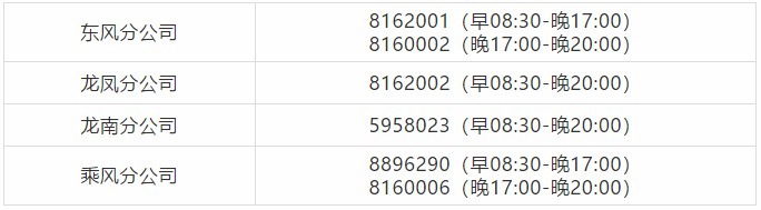 一、延长营业服务时间。市区内东风新村、龙南、乘风、龙凤等地区的所有营业厅营业时间每日延长4小时,营业时间调整为早8:30至晚20:00,中午不休息正常办理业务。